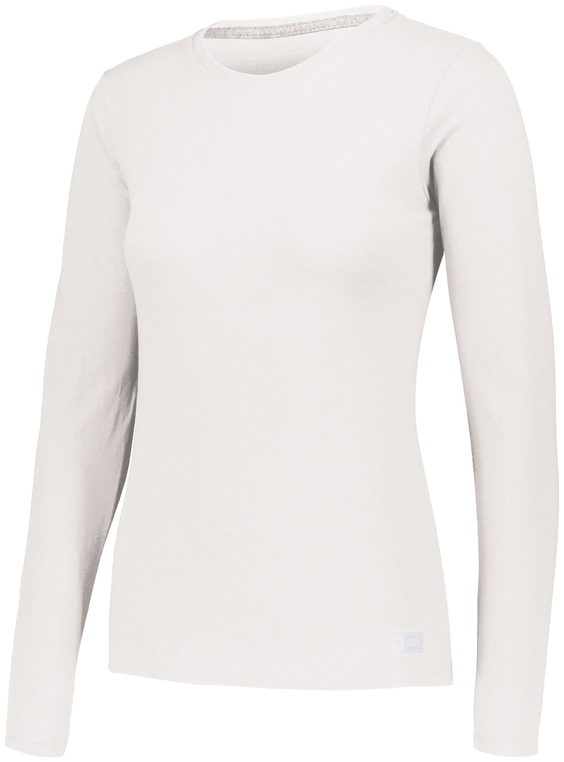 The Russell Athletic® Ladies Essential Long Sleeve Tee delivers comfort, style, and performance to fit your active lifestyle. This long sleeve crewneck T-shirt will keep you dry as you sweat, making it easy to transition from work to workout.